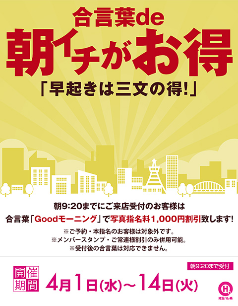 合言葉「Goodモーニング」で写真指名料1,000円割引致します!