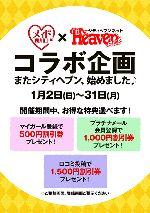 「メイド×ヘブンコラボ企画」またシティヘブン、始めました♪