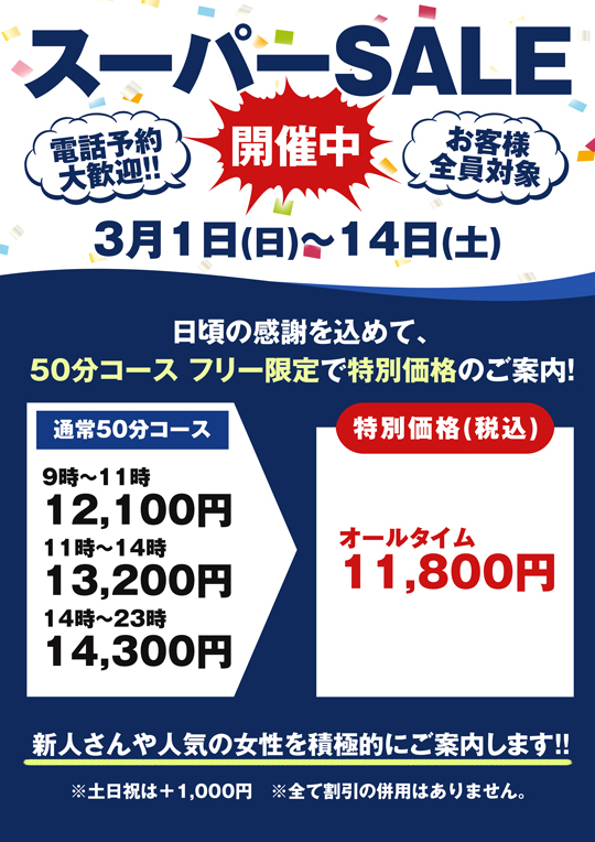日頃の感謝を込めて、50分コース フリー限定で特別価格のご案内!